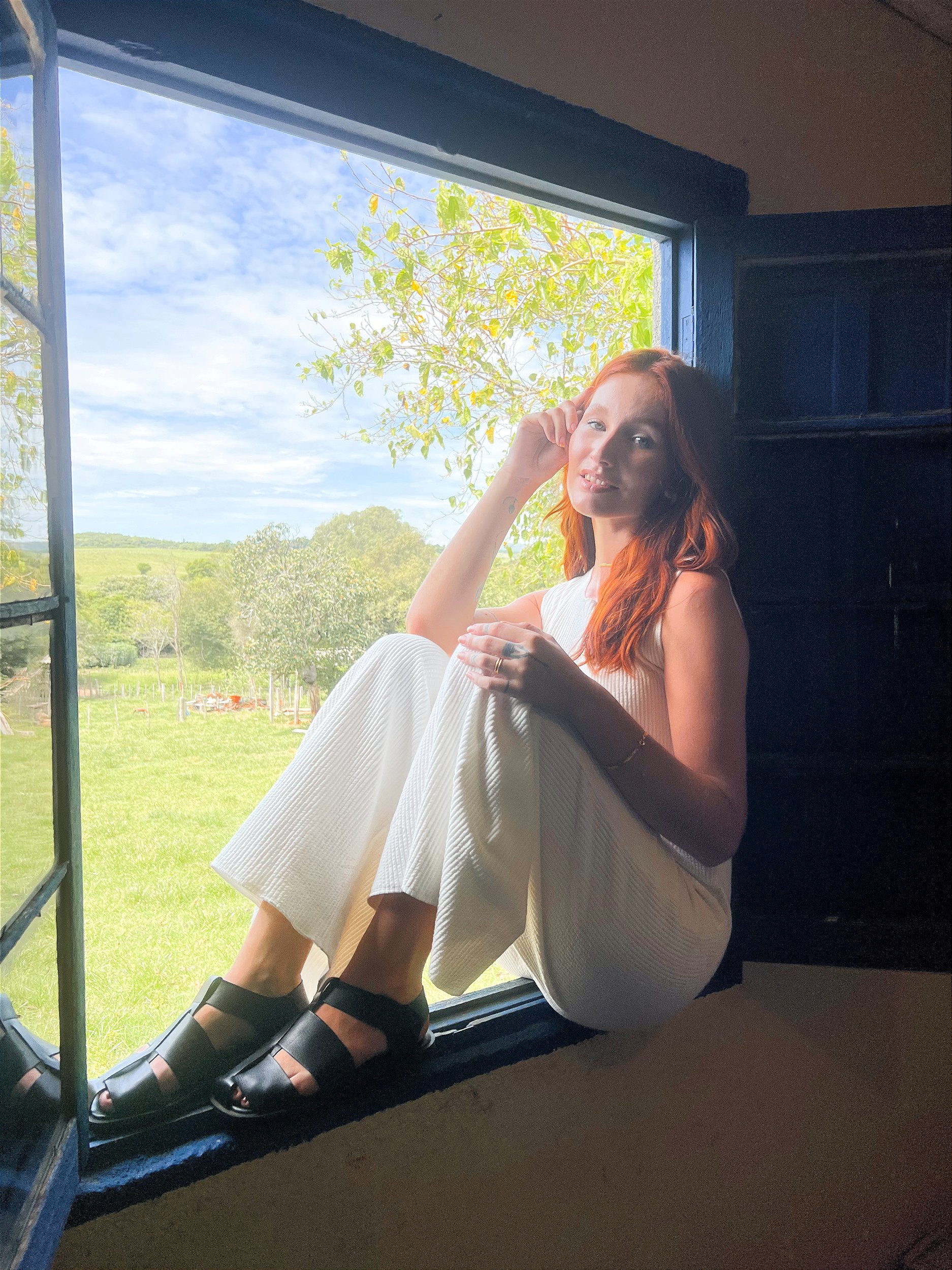 Modelagem soltinha com zíper invisível na parte de trás, para fechamento. Todo costurado na overlock, sem bainhas (decote, cavas e barra), tirando a costura do óbvio. Comprimento aproximado na altura do ossinho do tornozelo (pode variar dependendo da sua altura, ficando pouco mais curto ou mais comprido).
