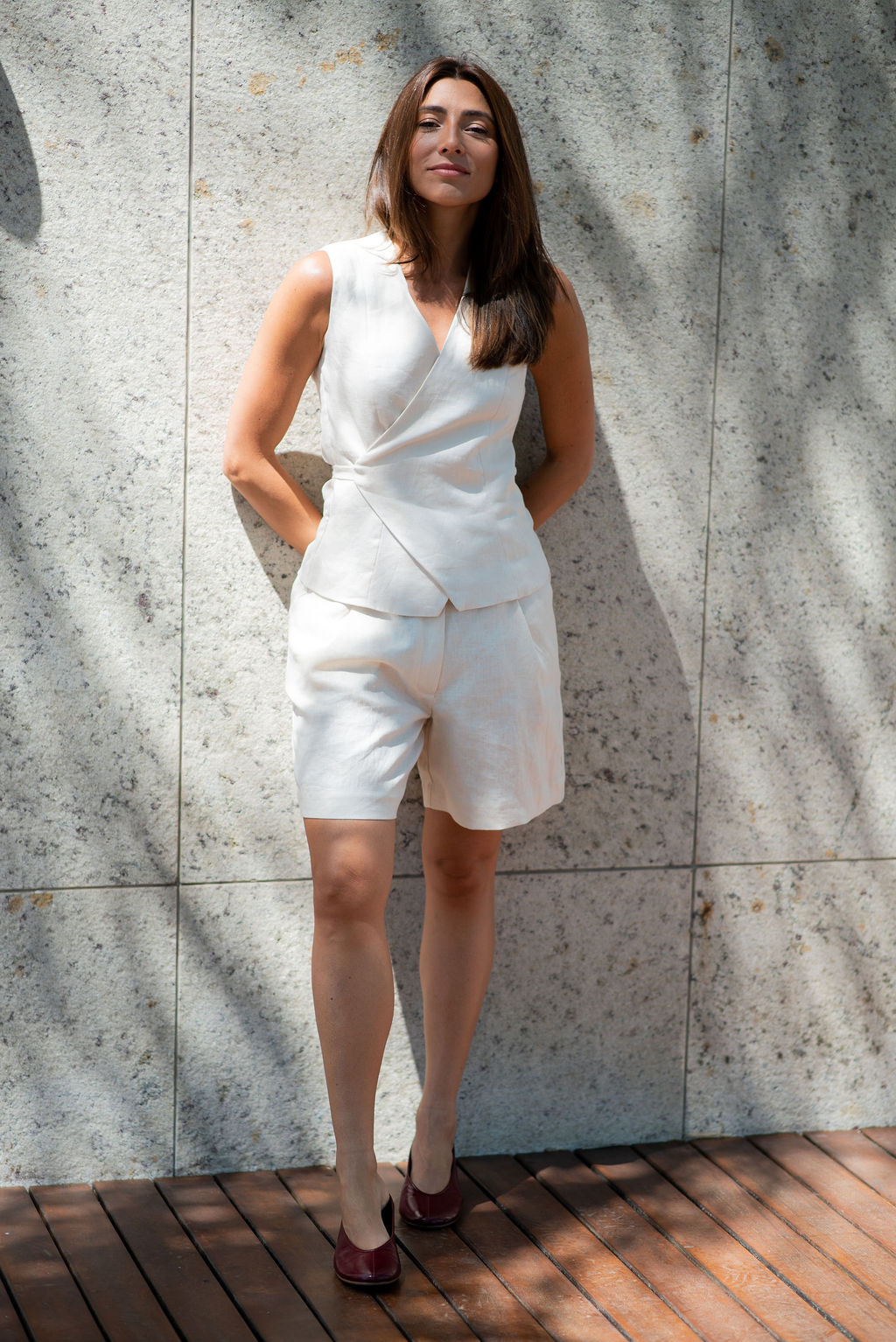 Permite diversas combinações de tops, como nossa camisa, blusa tomara que caia, blusa decotes e blusa transpassada, também em linho, além de outras blusas básicas.